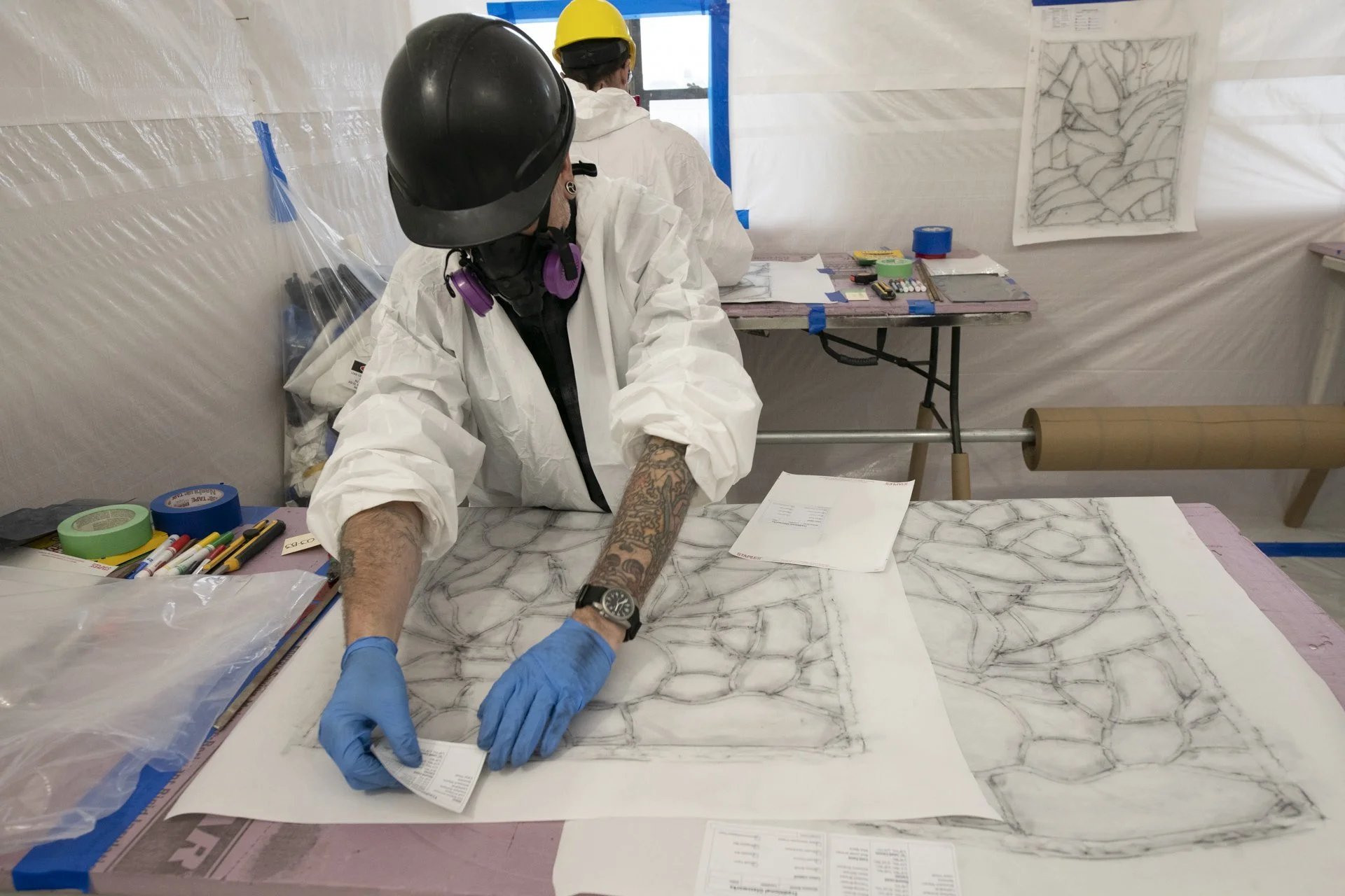 Working closely with multiple trades and companies to ensure the safety of the historical glass and stonework